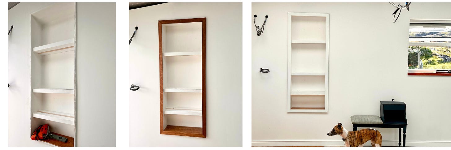 On Saturday afternoon, I realised that I was overtired, slightly grumpy and low in mood and couldn't figure out how to get out of it. It came to me whilst I was slowly making a border for my built-in bookcase out of edging strips. Slowly ….. because I don’t really know how to mitre joints so they fit well together. But as I was slowly sanding down the bits that didn’t quite fit perfectly with background music playing in the gallery, I began to realise that the act of physically making was actually making my mood lift and mind ease.